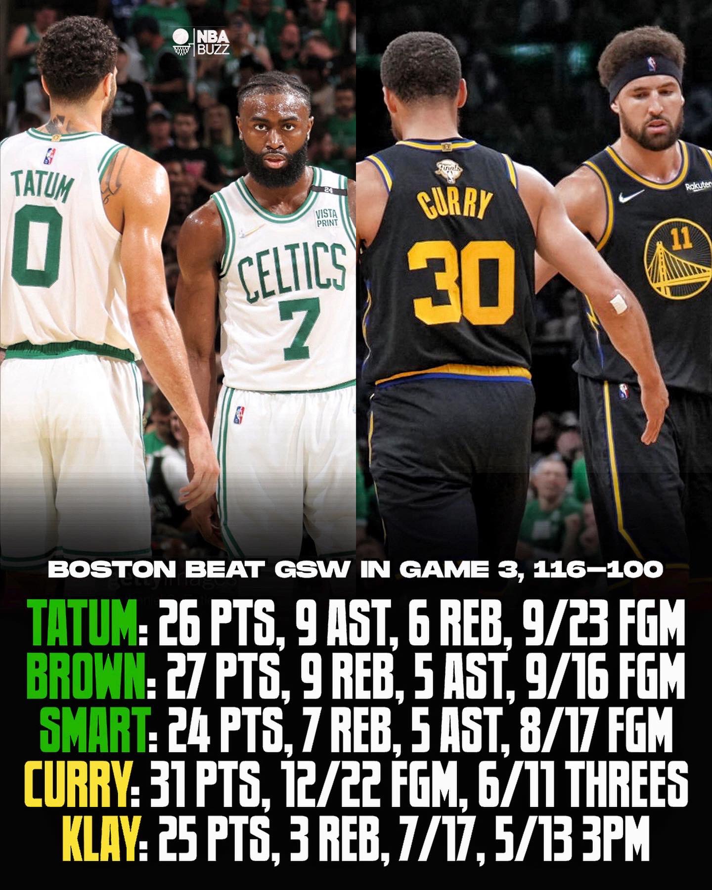 Nba Buzz On Twitter Celtics Win Game 3 Boston Beat Golden State 116 100 To Take A 2 1 Lead In The Nba Finals Jaylen Brown Jayson Tatum Amp Marcus Smart Dropped 24 Pts